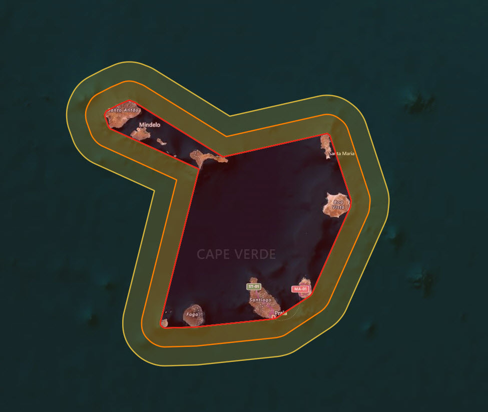 Espaços Marítimos Nacionais: Águas Interiores, Águas Arquipelágicas, Mar Territorial, Zona Contígua, Zona Econômica Exclusiva e Plataforma Continental De acordo com o direito internacional, e a Lei n.º 24/X/2023, de 05 de maio de 2023, no seu artigo 20º, os espaços marítimos sujeitos à jurisdição de Cabo Verde são: As águas interiores, As águas arquipelágicas, O mar territorial, A zona contígua, A zona econômica exclusiva, e A plataforma continental As águas arquipelágicas de Cabo Verde, conforme artigo nº 21 da Lei n.º 24/X/2023, de 05 de maio de 2023, correspondem toda a área marítima no interior das linhas de base arquipelágicas retas, que unem os pontos extremos das ilhas mais exteriores e dos recifes emergentes do arquipélago, a partir das quais se mede a largura do mar territorial, da zona contígua, da zona econômica exclusiva e da plataforma continental. As águas interiores, conforme artigo nº 26 da Lei n.º 24/X/2023, de 05 de maio de 2023, são aquelas que se encontram no interior das linhas de base arquipelágicas retas. Nestas águas Cabo Verde detêm poderes de soberania e dominiais e idênticos aos exercícios no seu território; e poderes exclusivos de pesca, navegação e sobrevoo. Mar territorial, conforme artigo nº 28 da Lei n.º 24/X/2023, de 05 de maio de 2023, tem a largura de doze milhas marítimas medidas a partir do ponto mais próximo das linhas de base arquipelágicas retas. Zona contígua, conforme artigo nº 30 da Lei n.º 24/X/2023, de 05 de maio de 2023, é uma zona contígua ao mar territorial, cujo limite exterior é de vinte e quatro milhas marítimas, contadas a partir do ponto mais próximo das linhas de base arquipelágicas retas. Zona econômica exclusiva, conforme artigo nº 32 da Lei n.º 24/X/2023, de 05 de maio de 2023, é a zona situada além do mar territorial e a este adjacente, e cujo limite exterior é a linha cujos pontos distam duzentas milhas marítimas do ponto mais próximo das linhas de base arquipelágicas retas, a partir das quais se mede a largura do mar territorial. Plataforma continental de Cabo Verde, conforme artigo nº 35 da Lei n.º 24/X/2023, de 05 de maio de 2023 corresponde o leito e o subsolo das áreas submarinas que se estendem além do seu mar territorial, em toda a do prolongamento natural do seu território terrestre, até a uma distancia de duzentas milhas marítimas do ponto mais próximo das linhas de base arquipelágicas retas, a partir das quais se mede a largura do mar territorial.